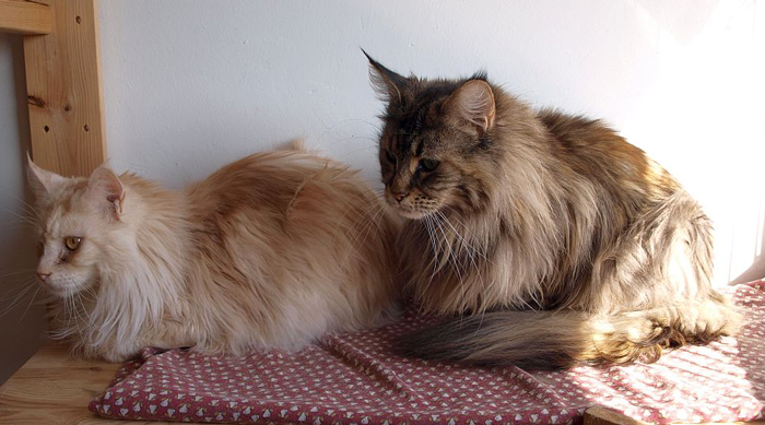 Da sofort erkennbar war, dass beide sehr miteinander verbunden sind, haben wir sie natürlich nicht getrennt. Sie liegen/schlafen zusammen, putzen sich gegenseitig, fressen aus einem Napf und zeigen überhaupt keine Rivalität. Menschen gegenüber sind sie sehr freundlich und äußerst warmherzig. Sie sind einfach ein Traumpaar.