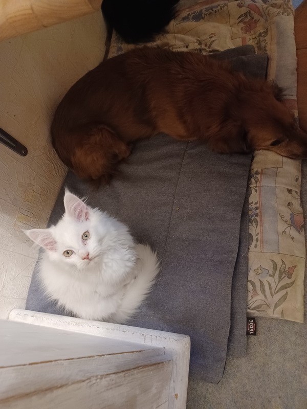 Finlay (der Name kommt aus dem irisch-schottischen und bedeutet soviel wie „weißer Krieger“) braucht im neuen Zuhause auf jeden Fall einen ungefähr gleichaltrigen Kater als Spielkumpel, kleine Mädchen würden mit seiner groben Art wahrscheinlich nicht zurecht kommen. Er ist aber durchaus Gruppen-kompatibel und fürchtet weder Tod noch Teufel *lach*. Er ist relativ respektlos und klaut einem die Butter vom Tisch, wenn ihm danach ist. Wasserspritze? Ein deutliches „Nein!“? Da lacht er drüber.