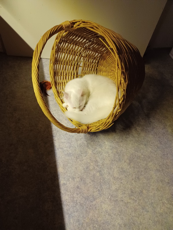 Finlay hört auf seinen Namen und spielt mit allem, was ihm grad in den Weg kommt, auch mit Papierkugeln, Stiften (er kaut von Touchpens den Gummi ab), Ladekabeln, Babyspielzeug, eingepackten Bonbons und natürlich auch mit ganz „normalem“ Katzenspielzeug. Er ist super neugierig und man sperrt ihn ständig in irgendeinen Schrank oder ins Treppenhaus oder oder….