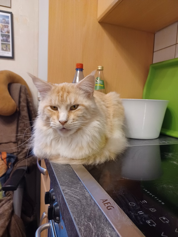 Obelix ist ein sehr netter, angenehmer Kumpel für Mensch und Katz‘. Er plaudert gerne mit einem sehr leisen, sehr piepsigen Stimmchen, das eigentlich gar nicht zu dem großen Kater passt. Er spielt sehr gerne, mit allem was ihm so in den weg kommt, aber am liebsten mit diesen bunten Plastikspiralen oder einem bestimmten Federwedel mit Glöckchen dran.