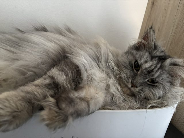 Cookie ist am 17.09.2021 geboren und hat die Farbe Blue Silver tortie White. Sie ist kastriert und gechipt. Sie ist gegen Tollwut, Katzenseuche und Katzenschnupfen geimpft. Die letzte Impfung war am 16.04.2025. Ich meine diese soll nach den neusten Impfempfehlungen nicht mehr jährlich erfolgen. Da muss ich mich noch informieren. Falls eine Auffrischung erforderlich ist, erhält Cookie diese auch.