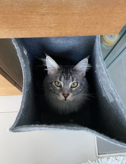 Hadiya ist etwas schüchterner als ihr Bruder, aber ebenso sehr menschenbezogen. Sie folgt ihren Menschen gerne durch den Tag und fühlt sich am wohlsten auf dem Schoß ihres Zweibeiners, wo sie ausgiebige Streicheleinheiten und Kopfkraulen genießt.